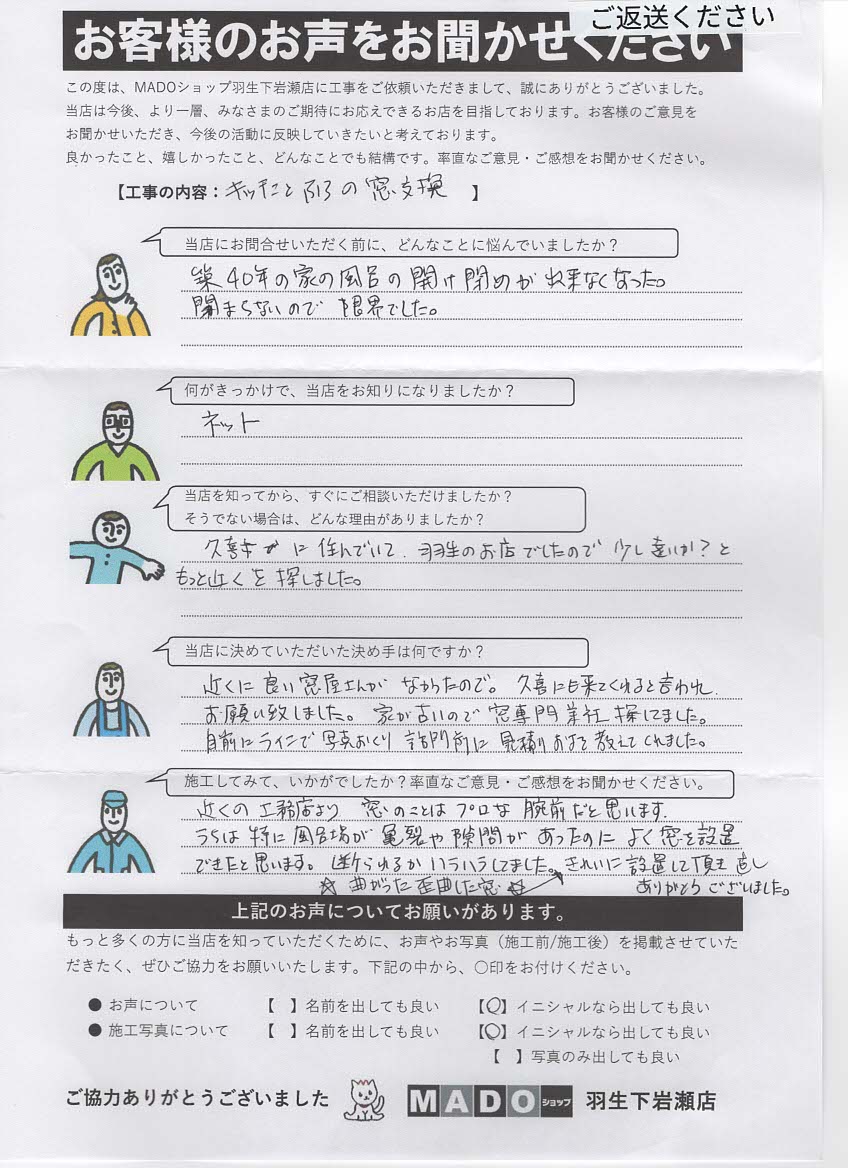 うちは特に風呂場が亀裂や隙間があったのによく窓を設置できたと思いました。